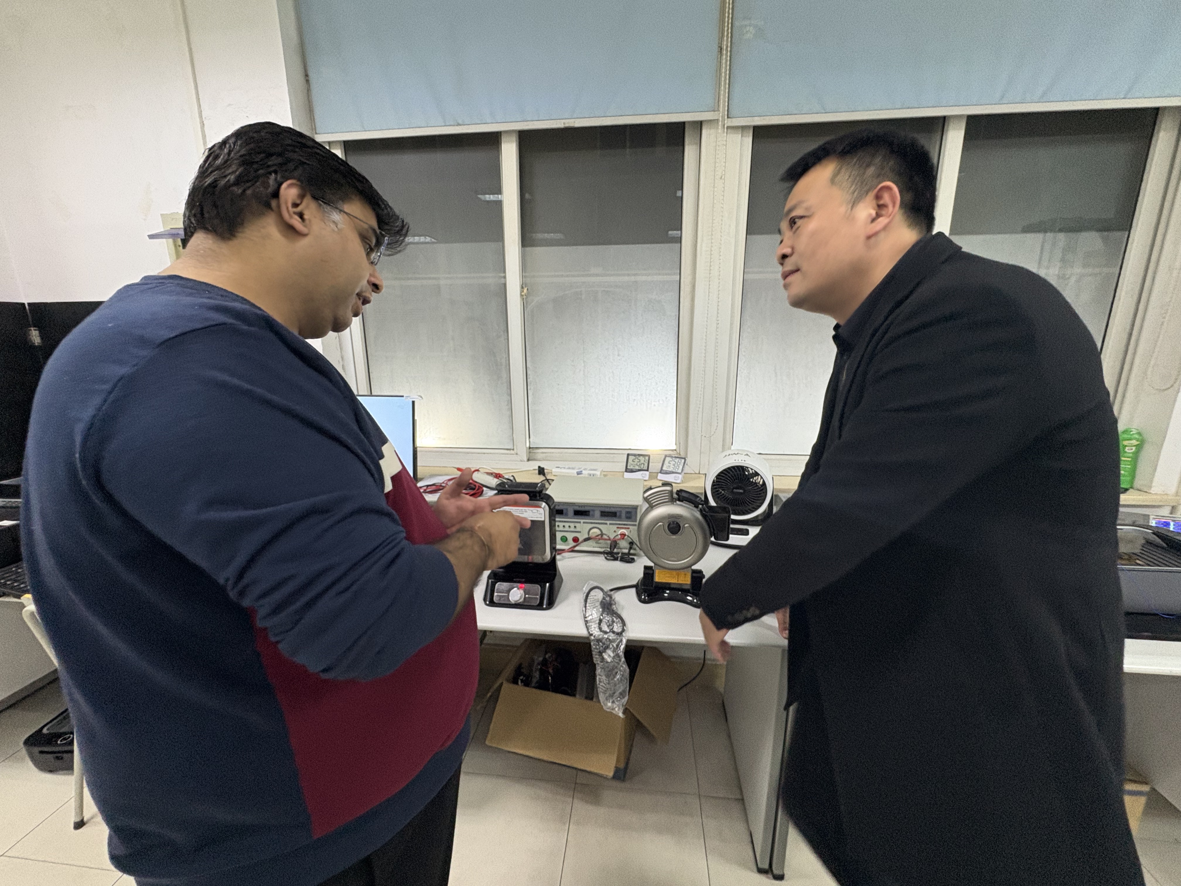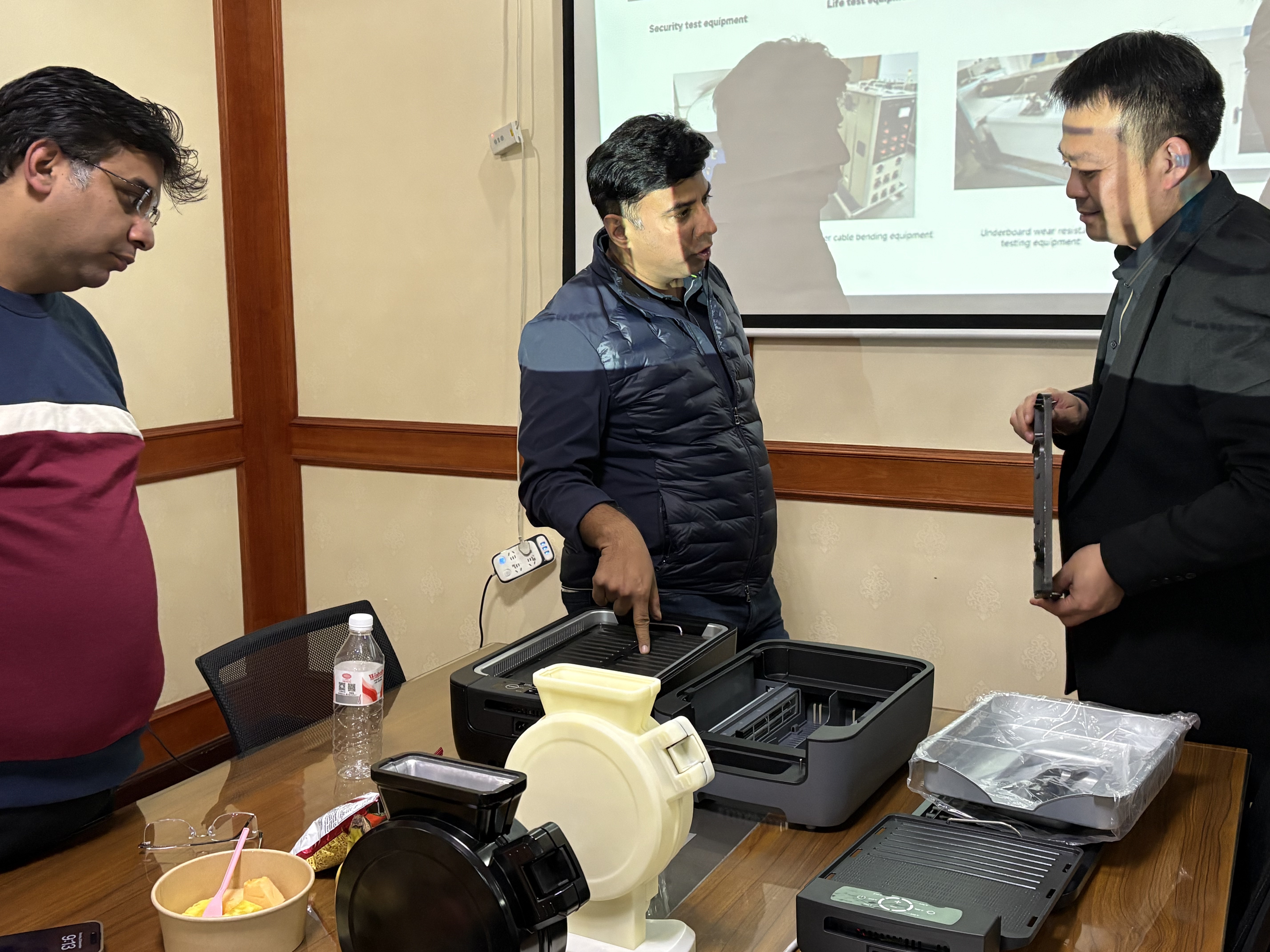 同社の技術チームに同行した顧客代表団は、まず同社の中核実験室と試験センターを訪問し、製品性能試験プロセス全体を観察した。技術エンジニアは、独自に開発した無煙バーベキューグリルとワッフルメーカーの詳細なデモンストレーションを行い、コアパラメータから実際のテストデータに至るまで、同社の家電製品における技術力と品質管理能力を包括的に示しました。クライアントは、ラボの専門的な構成、厳格なテストプロセス、製品の安定した性能を高く評価しました。双方は詳細な技術協議を行い、製品プロトタイプの詳細を確認した。